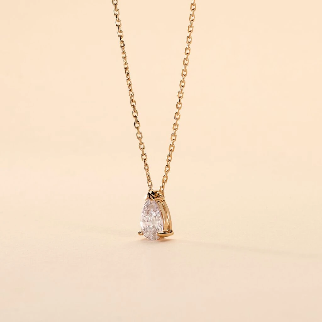 Collier Plaque Or Jaune 1 Oxyde De Zirconium Poire Serti 3 Griffes 45cm