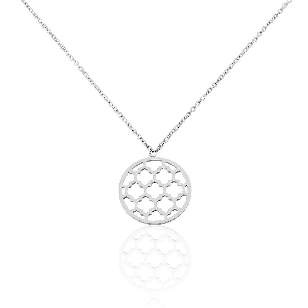 Collier Acier Cercle Motifs Trefles Ajoures 45cm