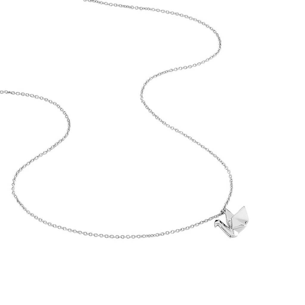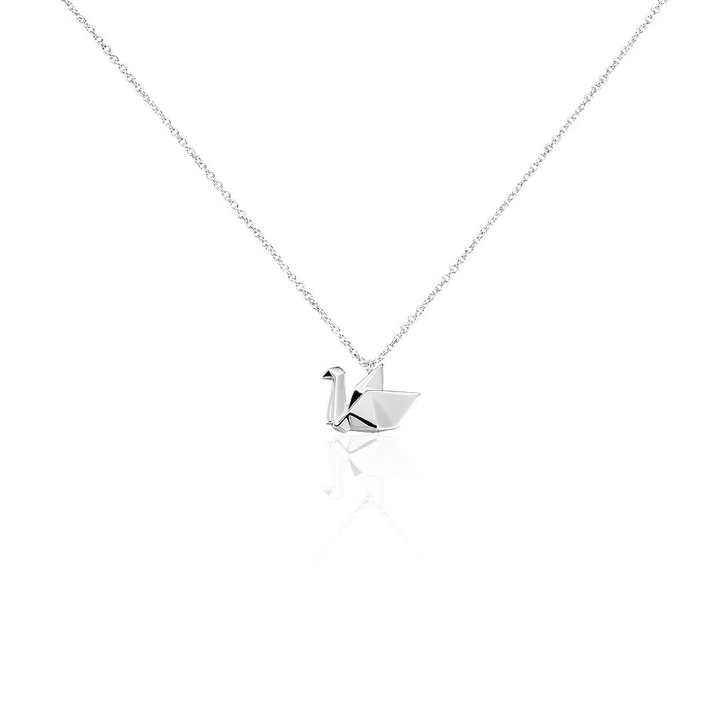 Collier Argent Blanc 925/1000 Cygne Origami Maille Forcat 45cm