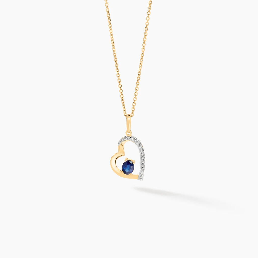 Pendentif Or Jaune 375/1000 Forme Cœur Saphir Et Serti Illusion