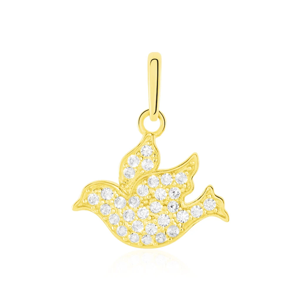 Pendentif Or Jaune 375/1000 Oiseau Micro Pavage Oxydes De Zirconium