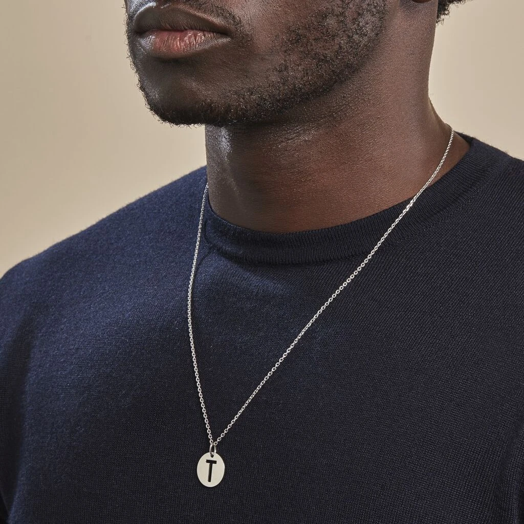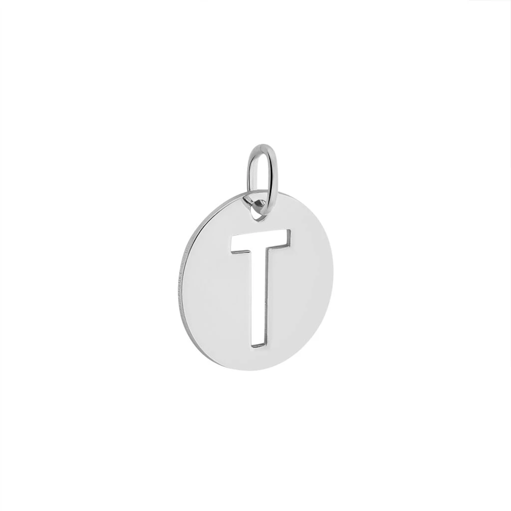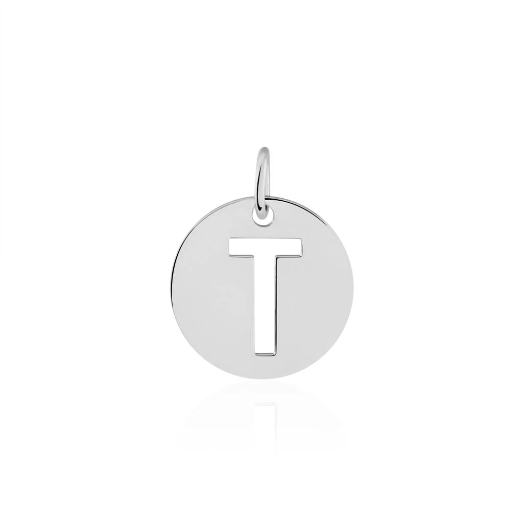 Pendentif Argent Blanc 925/1000 Pastille Lettre T Diametre 18mm