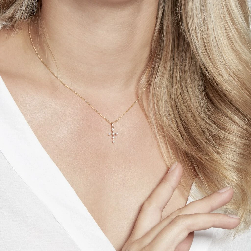 Pendentif Or Jaune 375/1000 Croix Perles De Culture 2/2.5mm Rondes