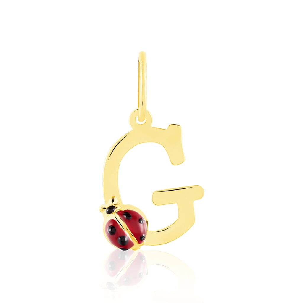 Pendentif Or Jaune 375/1000 Lettre G Motif Coccinelle Email Noir Et Rouge
