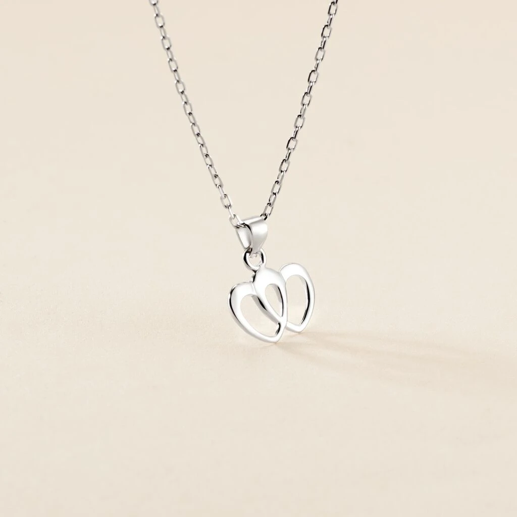 Pendentif Argent Blanc 925/1000 Double Cœurs Ajoures Entrelaces