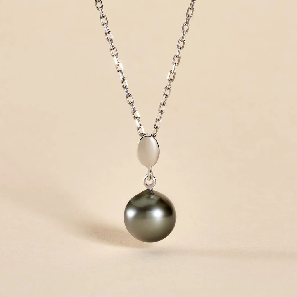 Pendentif Or Gris 375/1000 Perle De Culture De Tahiti Noire 9/9.5mm