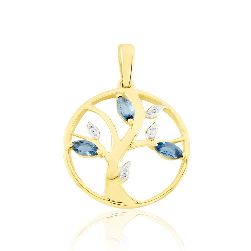 Pendentif Or Jaune 375/1000 Arbre De Vie Topazes London Blue Formes Navettes