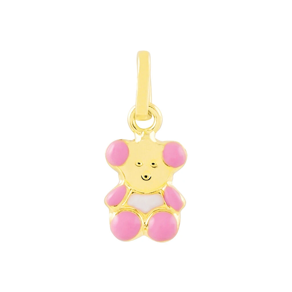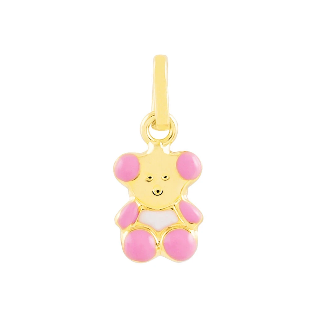 Pendentif Or Jaune 375/1000 Ourson Smalto Rose