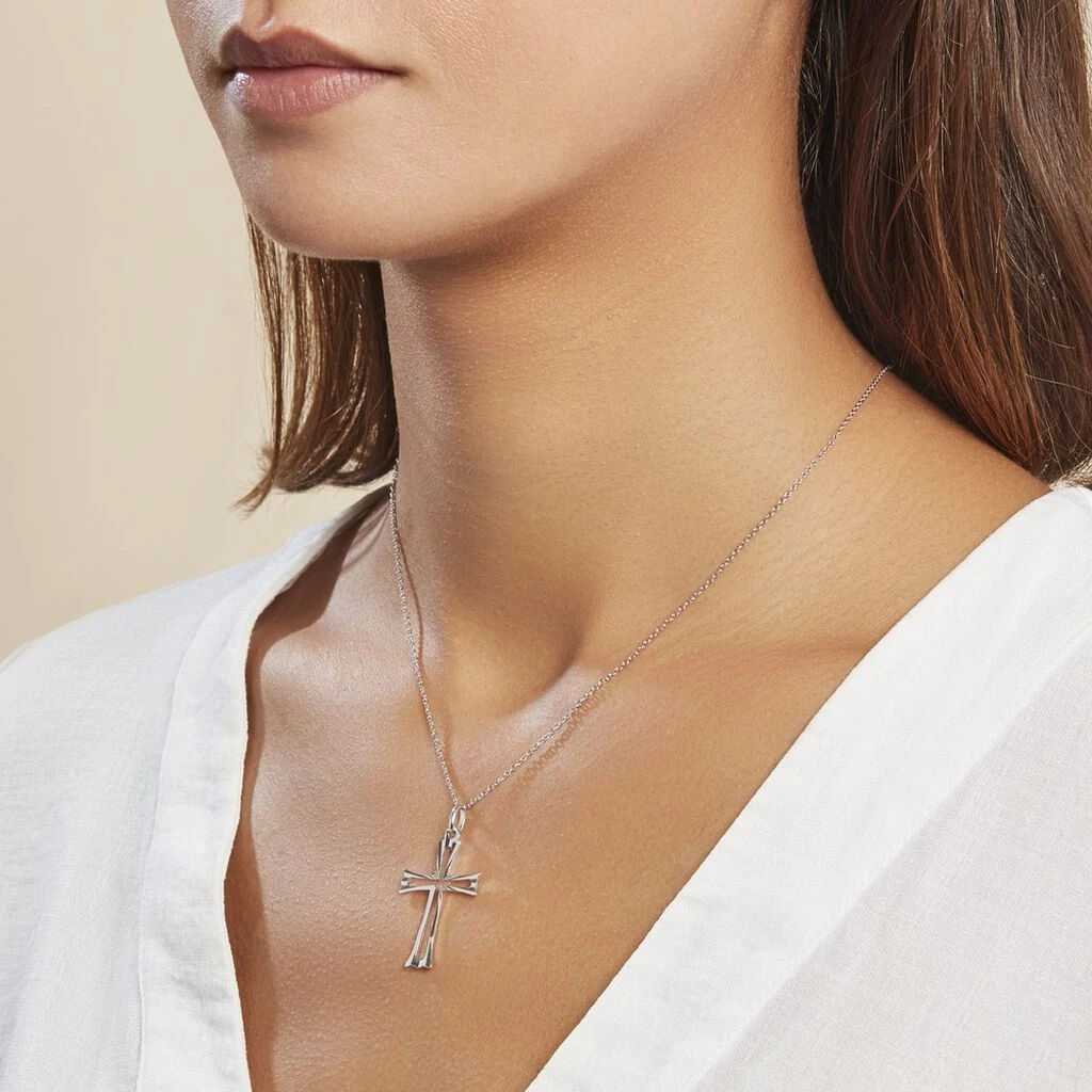 Pendentif Argent Blanc 925/1000 Croix Ajouree