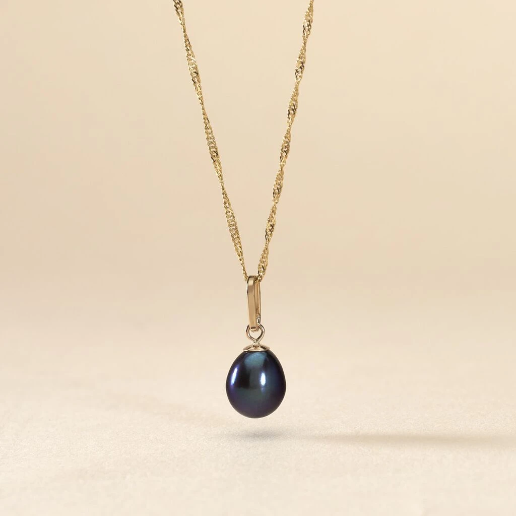 Pendentif Or Jaune 375/1000 Perle De Culture Noire 6.5/7mm