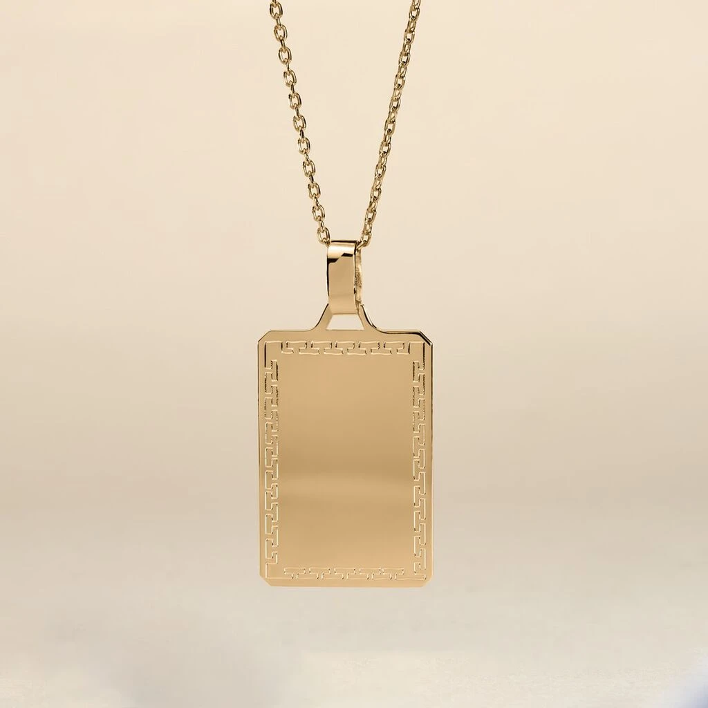 Pendentif Or Jaune 375/1000 Plaque Gi Motif Grec Gravable Pm